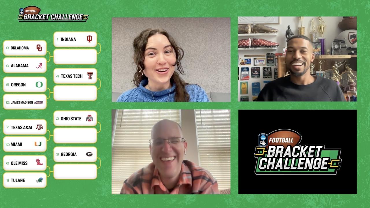 You have until brackets lock at kick off of the No. 8 Oklahoma vs. No. 9 Alabama game at 8 p.m. this Friday, Dec. 19. Click or tap here to make your picks.