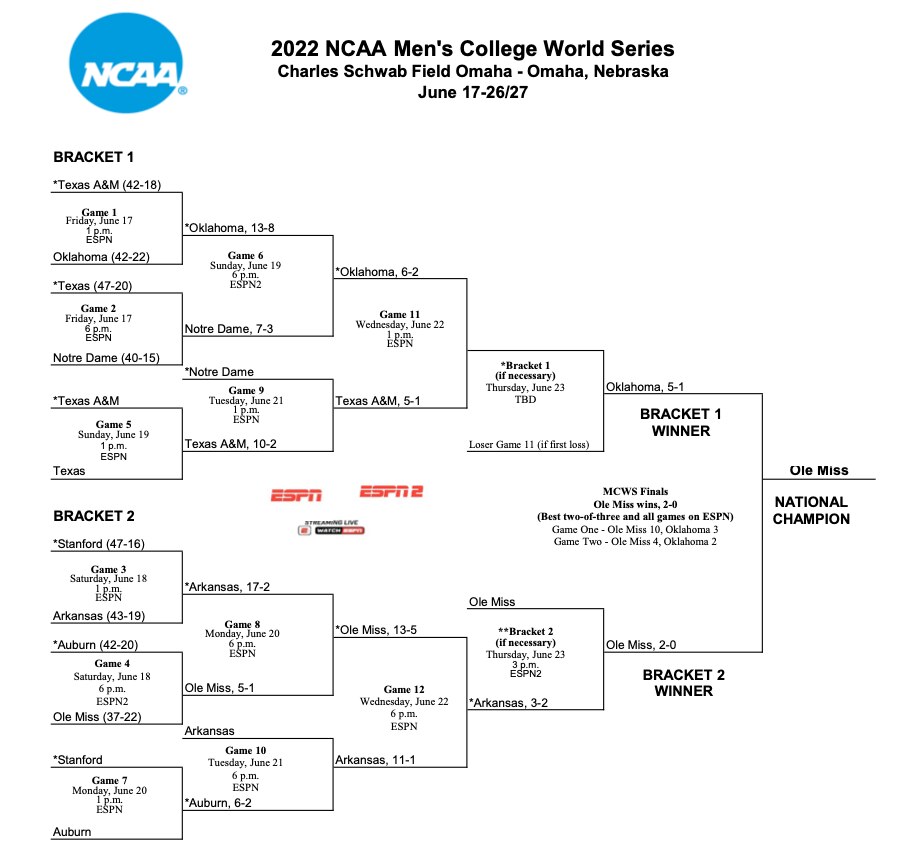 2022 Men's College World Series: Bracket, scores for the DI baseball tournament