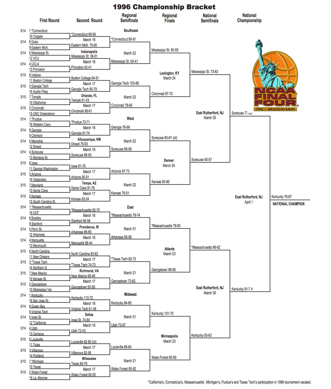 Here is the 1996 NCAA tournament bracket.