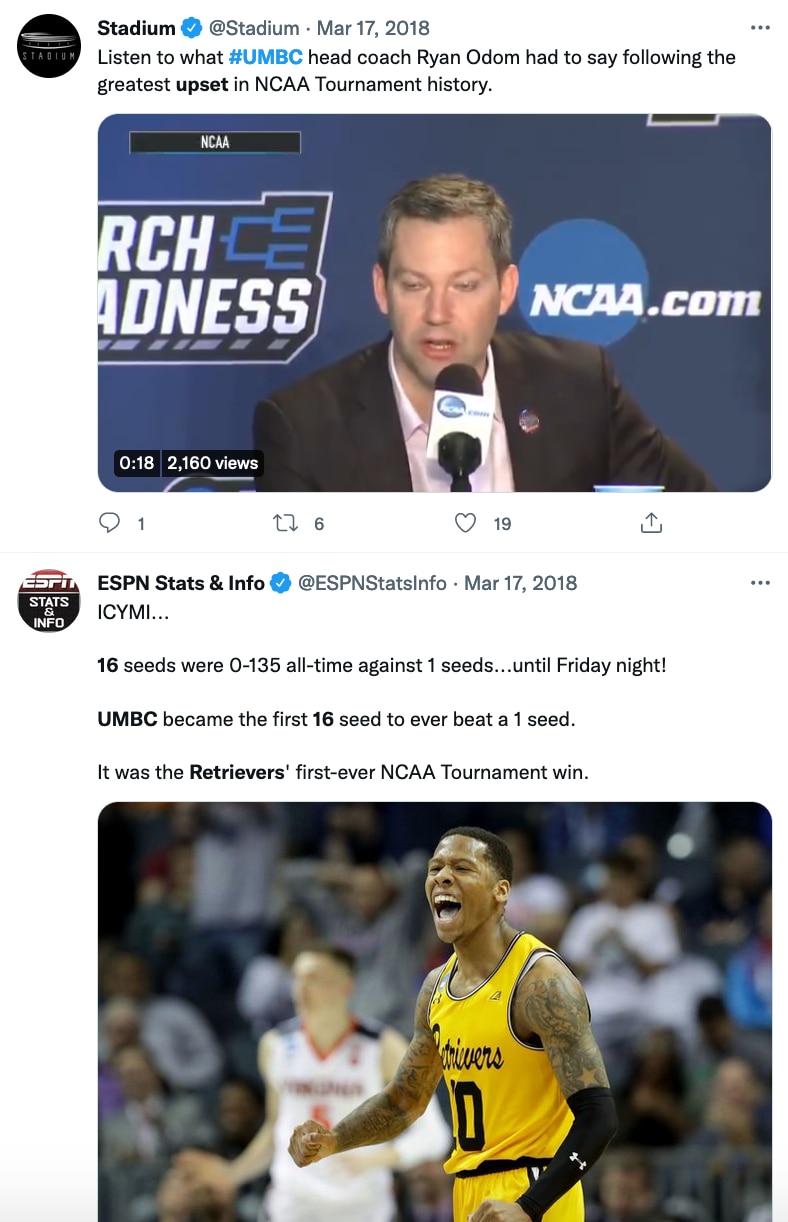 As part of krikyalotto.com's NCAA Video Vault series, we're diving into UMBC's historic upset as a No. 16 seed over No. 1 seed Virginia in the first round of the 2018 NCAA Tournament — the first 16-over-1 upset in the history of the men's tournament.