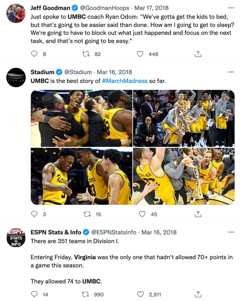 "Sit back and watch history, folks," Nantz said in the closing seconds, with UMBC leading 74-54. "The NCAA tournament has been turned upside down."