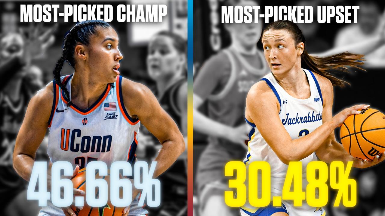(1) UConn over (1) UCLA - "I have UConn winning it all. What can you say? They've been dominant all season long. They're the best team, undefeated, completed every single test in the non-con. They have the best player in the nation on the best team, Sarah Strong and Azzi Fudd in her last ride, and KK Arnold as an unsung hero. They have depth off the bench. UConn has it all.