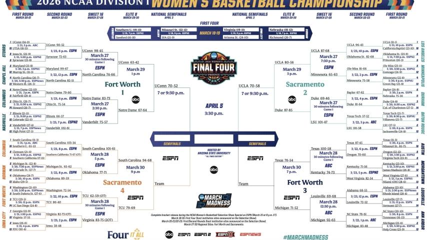 2026 NCAA women's basketball tournament: Bracket, schedule, scores