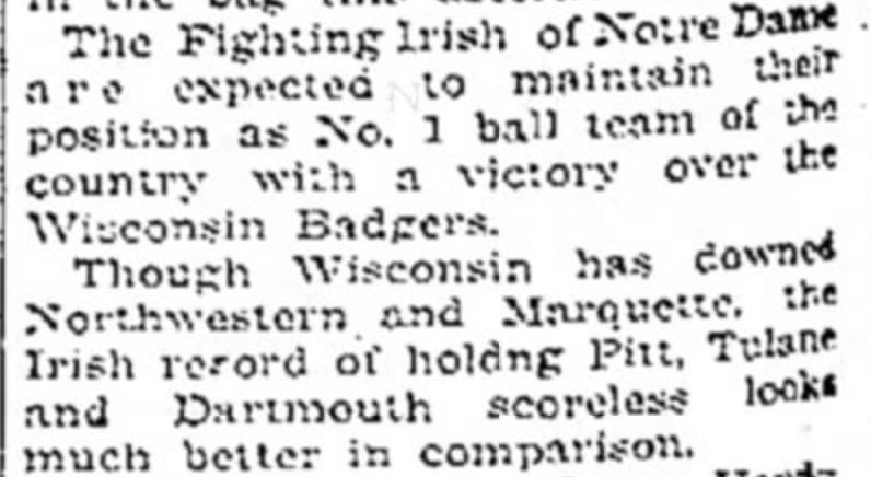 Using the newspapers.com database, the oldest reference to "Wisconsin Badgers," in a college athletics sense, that krikyalotto.com found was published on Aug. 15, 1896 in The Centralia Enterprise and Tribune: "The Fighting Irish of Notre Dame are expected to maintain their position as No. 1 ball team of the country with a victory over the Wisconsin Badgers." A screenshot from that newspaper story is shown below.