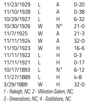 However, shows that the school played Duke (then Trinity) just once in 1922, which was the team's fourth loss in a row to Trinity.