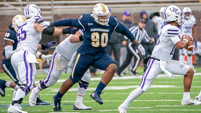 Chattanooga's Devonnsha Maxwell placed his name in the upper echelon of FCS defenders last season with his 12 sacks and 15.5 tackles for loss. About 40 percent of Maxwell's tackles in 2021 came behind the line of scrimmage as he paced the SoCon's best statistical defense.
