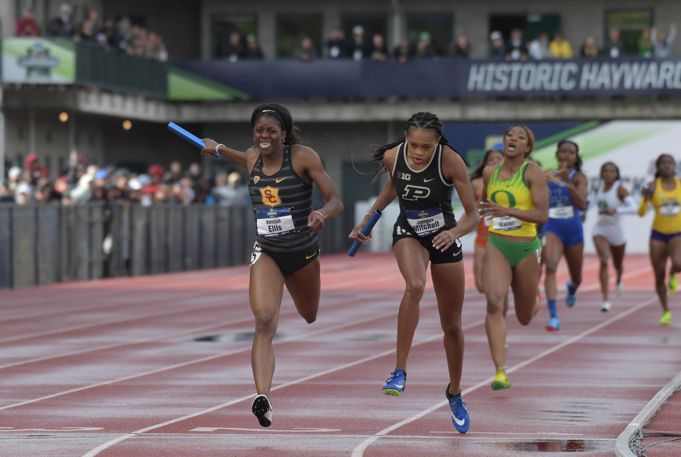 After all of that, there still was one more leg to run. A stumble and a close pass had USC in third, but entering the backstretch, the Trojans trailed Purdue by 30 meters and Oregon by 15 meters.