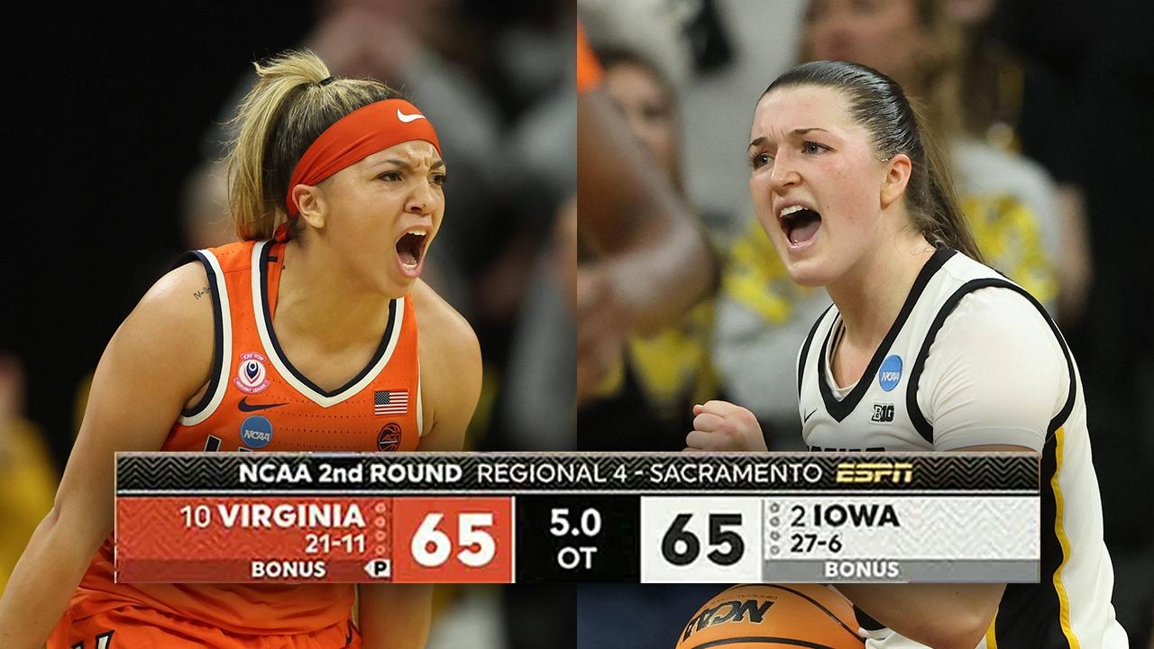 The first overtime had unobserved fouls on both sides, saw the lead change hands, Virginia tie the game on a seven-foot floater from Virginia’s Kymora Johnson and a potential game-winning 3-pointer from Iowa’s Taylor Stremlow go in-and-out in the final seconds. But the result was the same — another overtime.