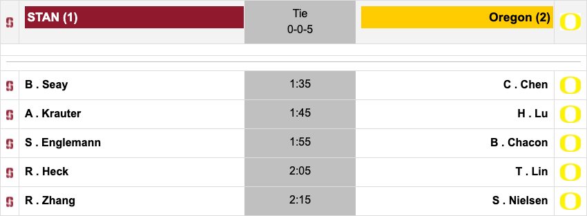 Other than Oregonβs Tze-Han Lu, who won her match, only Briana Chacon led at one point in her match for the Ducks. Chacon was able to come up clutch and steal a point away on the 18th hole to make it 2-2.