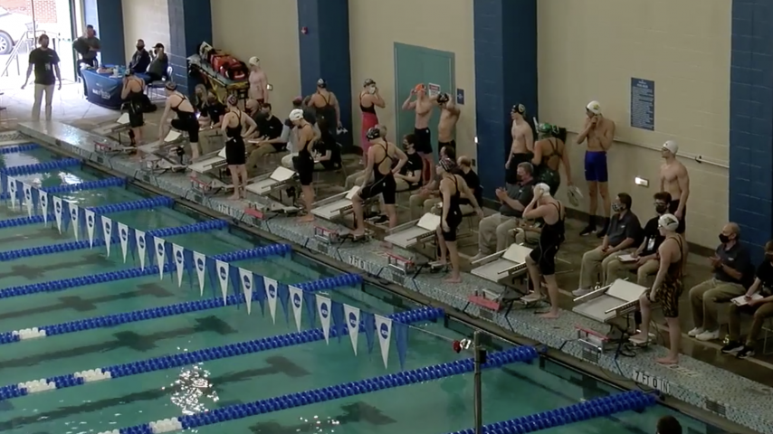 The Royals' men's and women's teams midway through Day of 3 of the 2021 DII men's and women's swimming & diving championships.