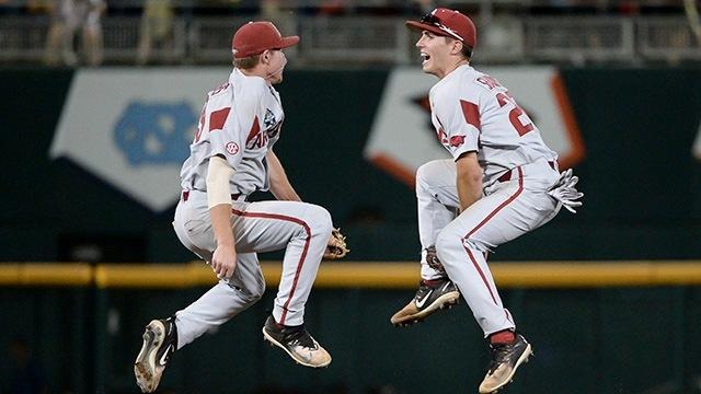 Why we love it: Arkansas was a team riding high throughout the College World Series. The Razorbacks were 3-0 entering the finals. Despite the tough loss in the finals, we can't forget about Arkansas' impressive run in Omaha this year. This photo of Carson Shaddy and Jax Biggers jumping for joy proves just that.