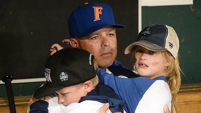 Why we love it: Often in sports, the victories come along with the pain of a loss. This photo captures a tender moment with Gators head coach Kevin O'Sullivan and his children, who consoled him after the loss to Arkansas which eiminated them from Omaha. Florida entered the College World Series as the defending champs, and many thought they could maybe do it again