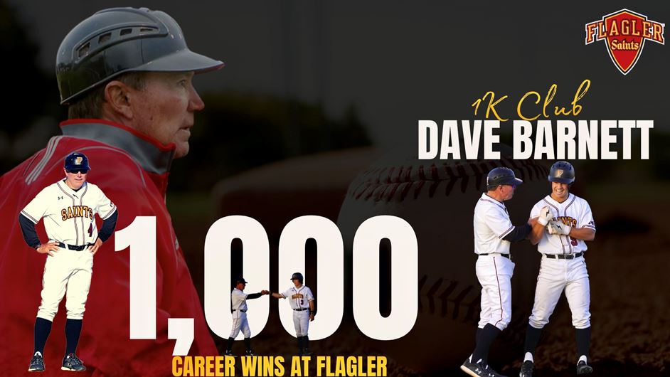 On Sunday, April 10, Flagler's head coach punched his ticket to the club. Barnett was a mere two wins away on March 28, but the Saints lost seven in a row, putting the monumental victory on hold for two weeks. With a pair of wins over Lander, Barnett finally hit 1,000 — a number he began chasing when his career began in 1987 at Flagler. That's right — all 1,000 wins have come with the Saints. He is the third DII baseball coach to reach the 1,000-win plateau with the same program for his entire career.