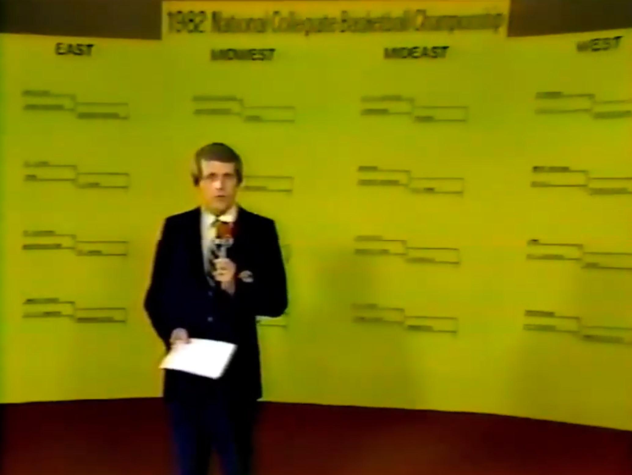 It might surprise you how modern the first selection show broadcast looks, when you compare it to what you see on TV today. The start of the show highlighted some of the scores from notable conference tournament championship games, offered some speculation on the seeds high-profile teams would receive and the regions in which they would be placed, and there was a whip-around to reporters stationed around the country with various head coaches and fan bases.