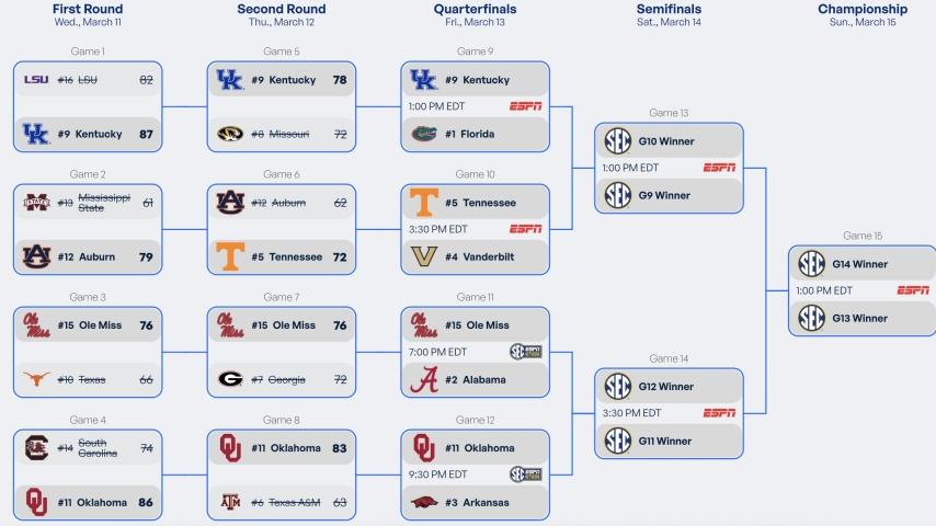 2026 SEC tournament: Bracket, schedule, scores for men's basketball
