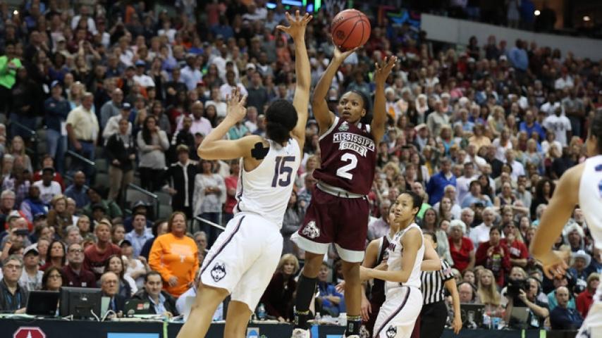 After 111 games, including two national championship runs, the UConn women's basketball team has lost a game. The program's record winning streak, stretching back to 2014, was snapped in Friday's Final Four matchup between the Huskies and Mississippi State with the Bulldogs coming out with a 66-64 overtime win on a buzzer-beating jumper from Morgan William. MSU will now face South Carolina in the national championship game, ending UConn's four-year title run.