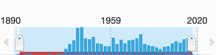 The following graph shows the popularity of the term "Alabama Crimson Tide," according to the newspapers.com database.