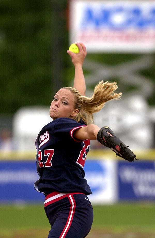 Courtney Blades from Southern Mississippi also makes this list. Blades might not have been on a team that won national championships, but she still proved to be one of the top pitchers, taking home the Honda Award in 2000. In 2000, she broke Granger's previous NCAA Division I career strikeout record and led Southern Miss to the WCWS. She finished the season with a total of 663 strikeouts that brought her career total to 1,773, a record that stood until 2006. Blades still holds the NCAA record for most wins in a season with 52.