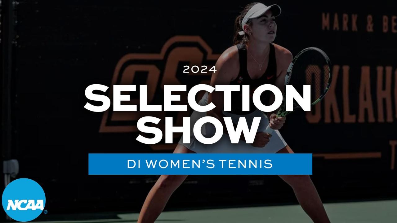 INDIANAPOLIS--The NCAA Division I Women's Tennis Subcommittee has selected the 64 singles players and 32 doubles teams that will compete in the 2024 NCAA Division I Women's Tennis Championships.