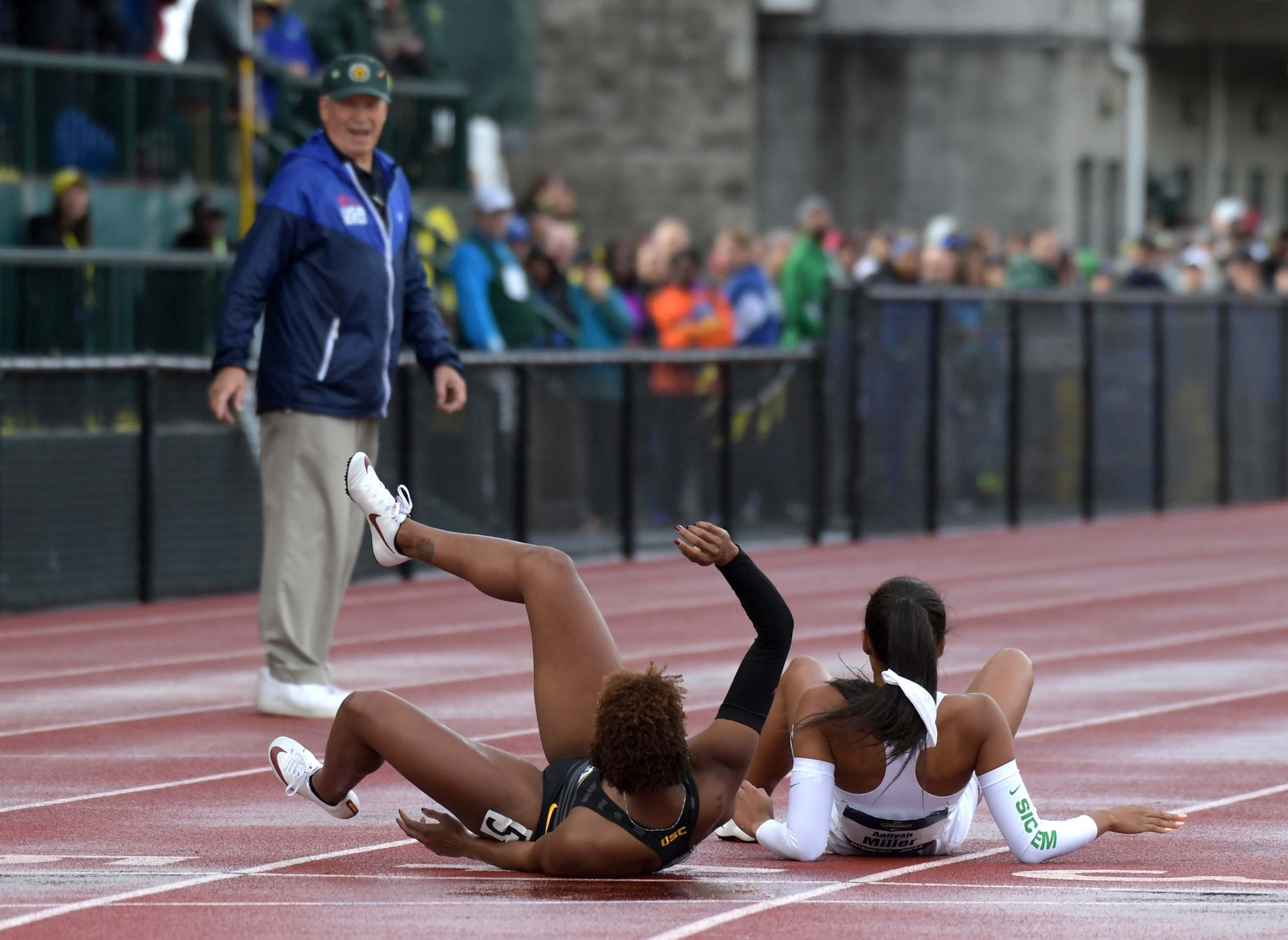 After all of that, there still was one more leg to run. A stumble and a close pass had USC in third, but entering the backstretch, the Trojans trailed Purdue by 30 meters and Oregon by 15 meters.