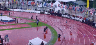 Of course, like any other 400-meter long race, the 400-meter hurdles saw each athlete begin with staggered starts. The key for any athlete is to make up the stagger by hitting their hurdles first.